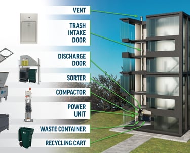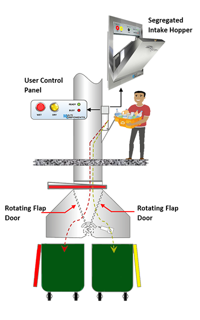 A Garbage Chute is a vertical pipe system installed in multi-storey buildings for easy and safe waste disposal. Residents or staff can throw garbage into the chute door on each floor, and the waste directly goes down to a collection bin at the ground level.